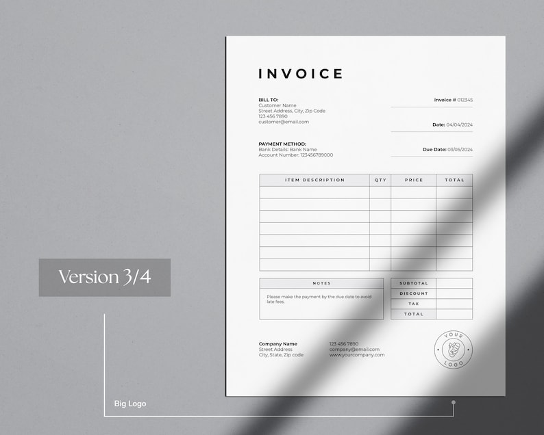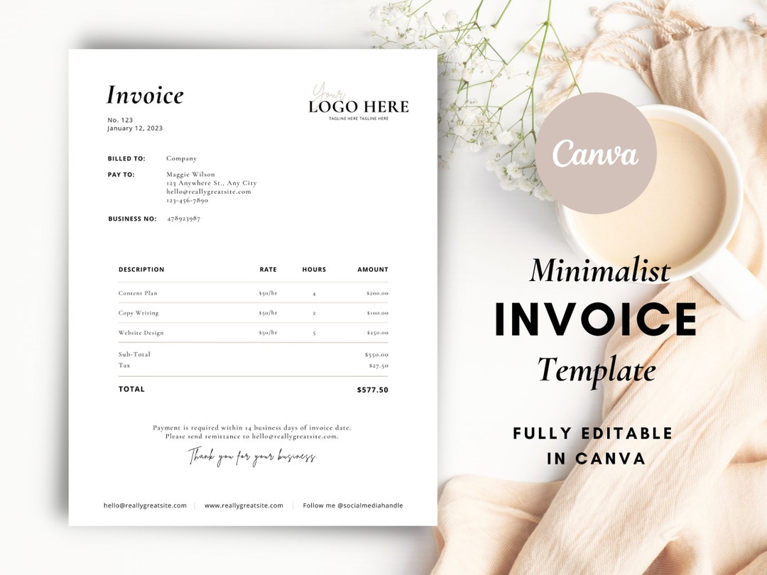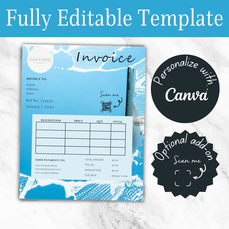 Clean Invoice Template Canva, INSTANT DOWNLOAD, Invoices for Business ...