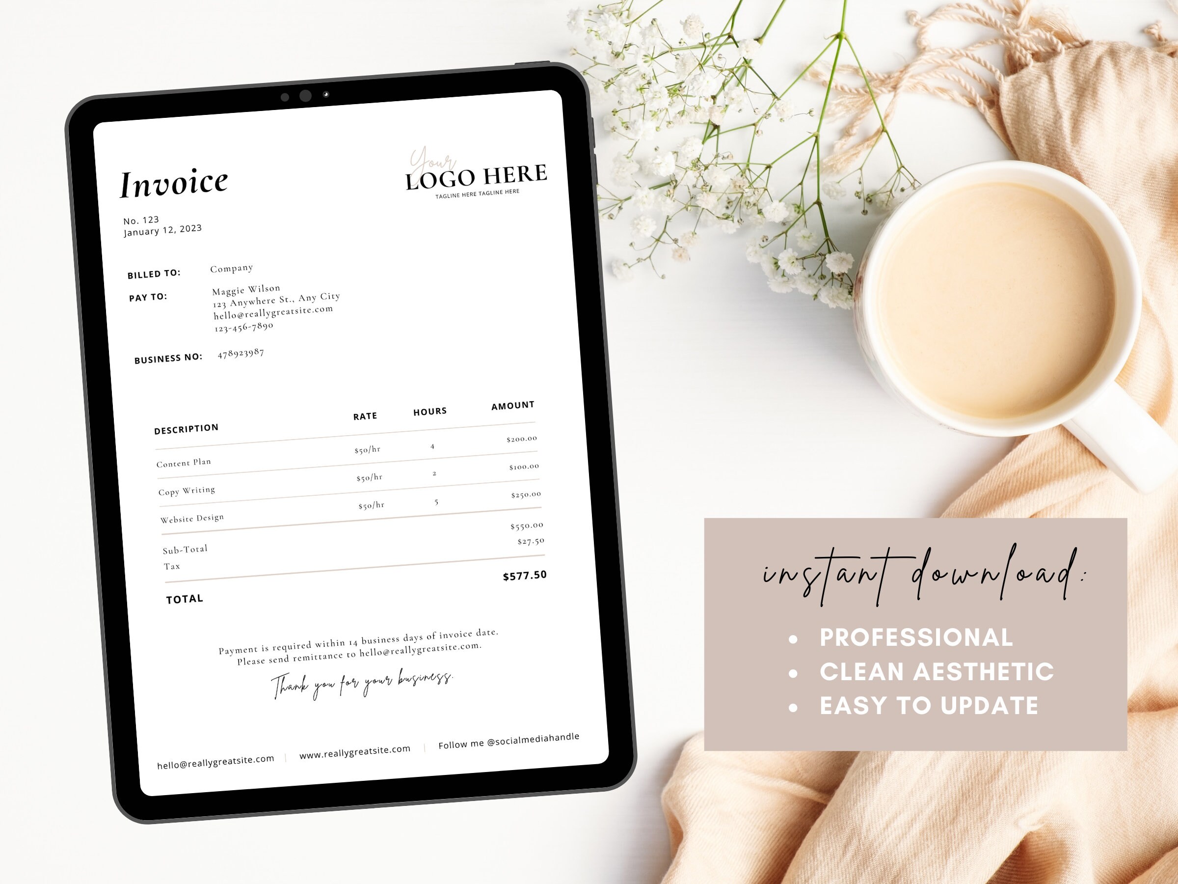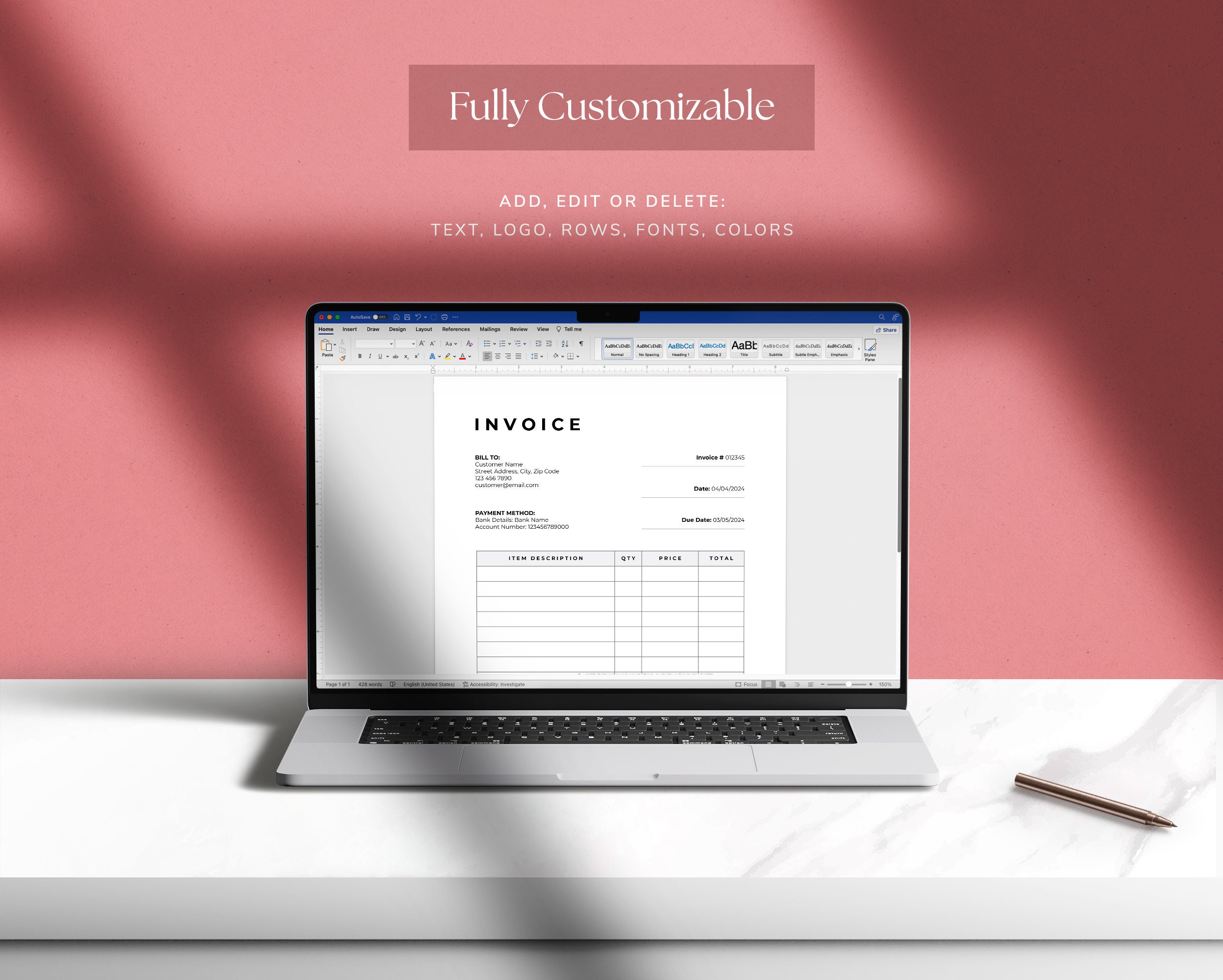 Simple & Clean Invoice Template for Word and Pages Fully Editable - Etsy