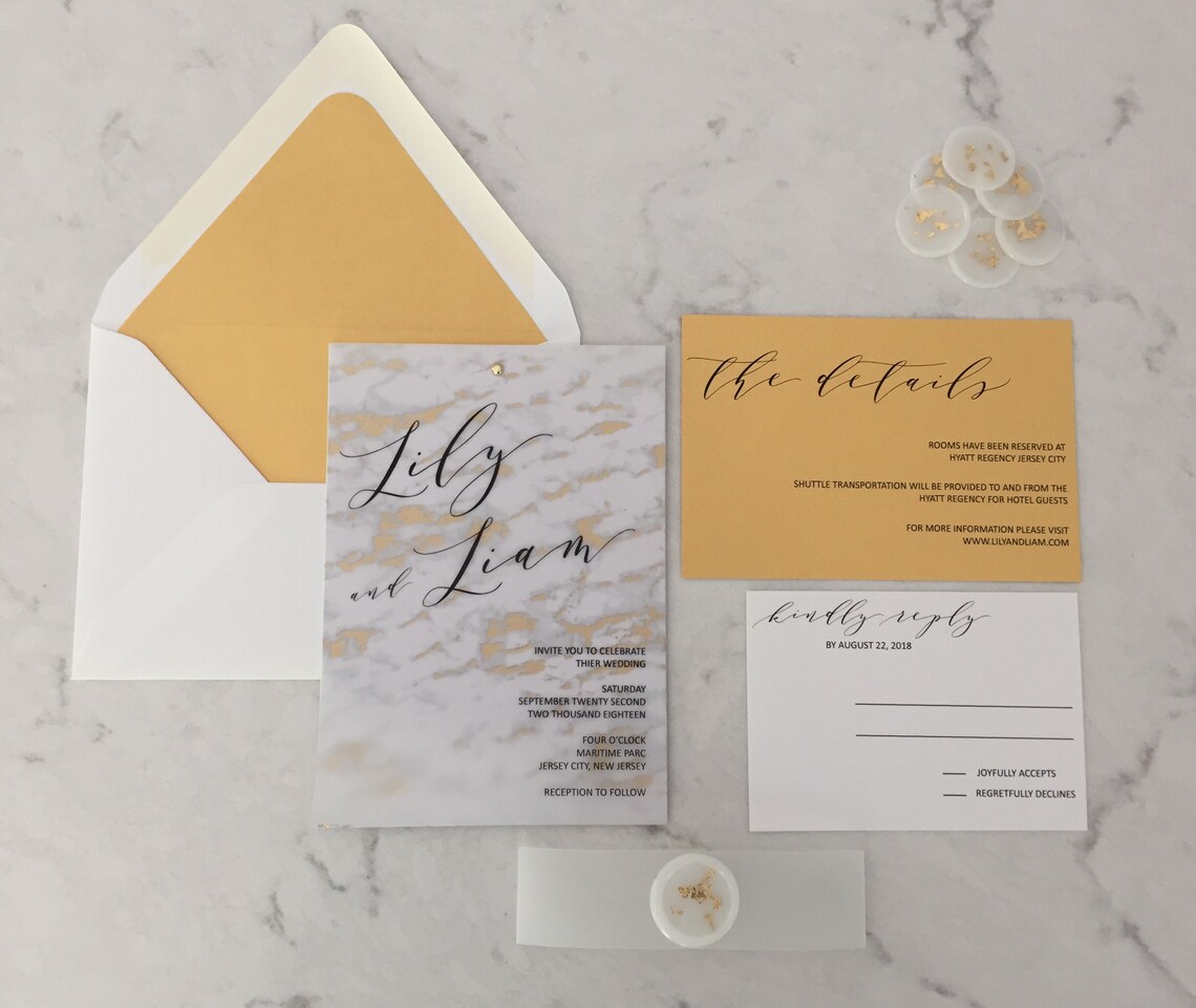 Gold Foil Acrylic Wedding Invitation With Pocket Envelope - Etsy ...