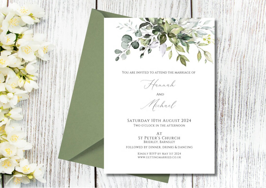 Rustic Botanical Vellum Wrap Wedding Invitation, Personalised, Greenery ...