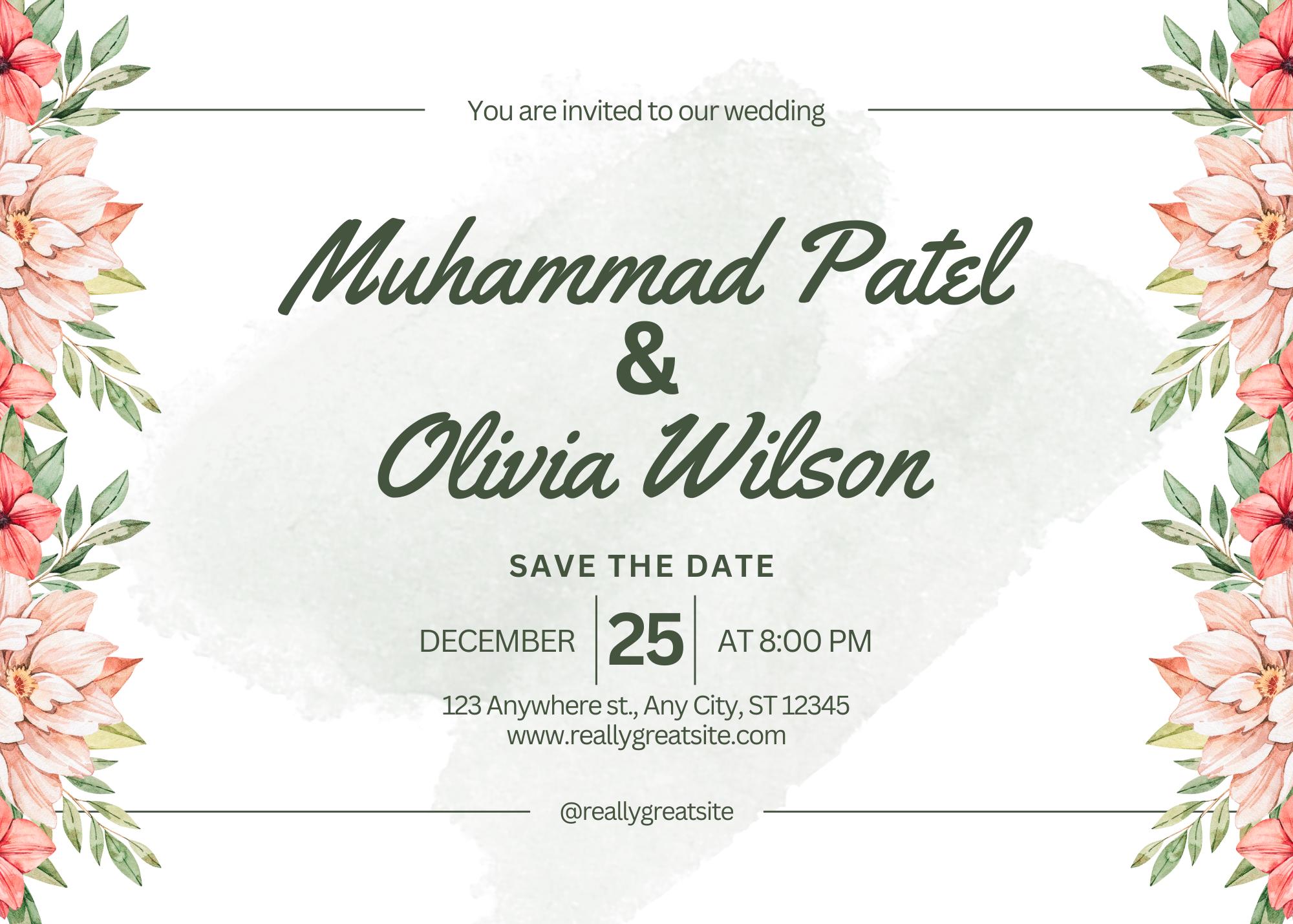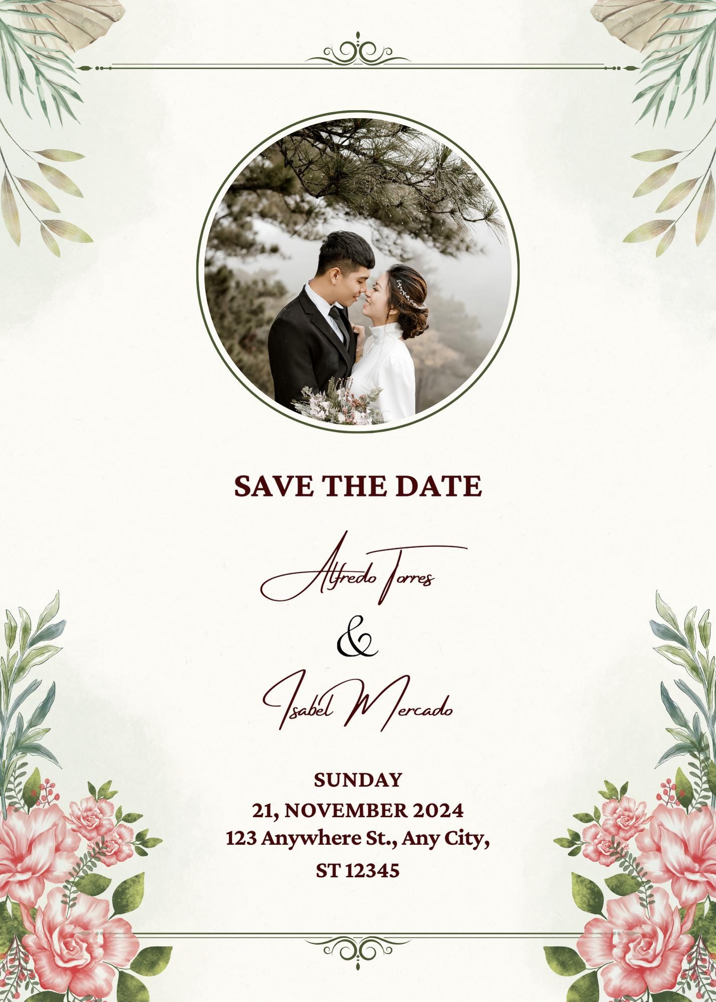Pink Floral Wedding Invitation Design Template Editable Design Made for ...