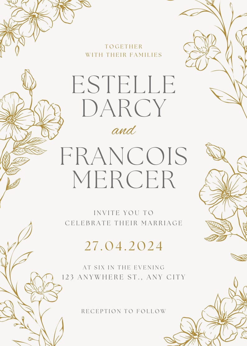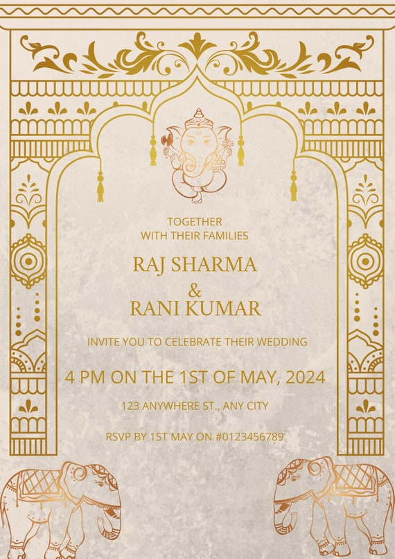 Geometric white floral wedding invitation template gold and etsy – Artofit