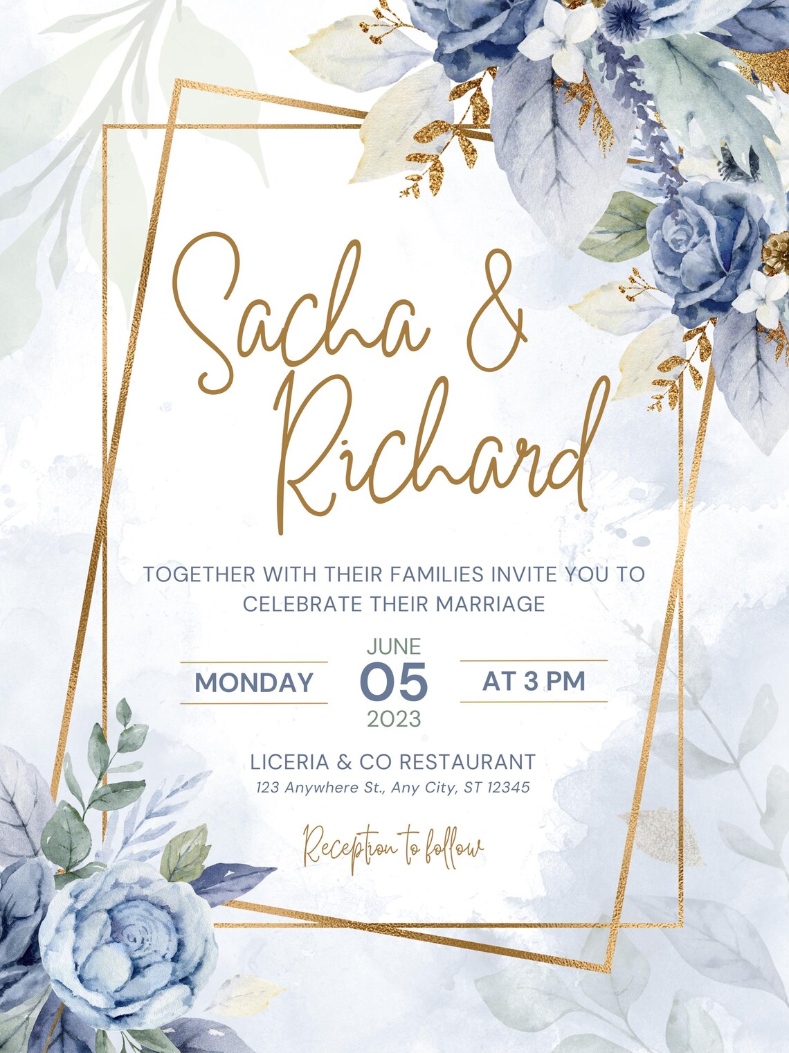 Blue and White Wedding Invitations, Modern Wedding Invitation ...
