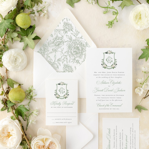 Custom Watercolor Wedding Invitation Suite, Watercolor Crest Wedding ...