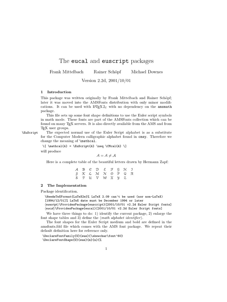 math mode - Using AMS Euler Font for a portion of a document - TeX ...