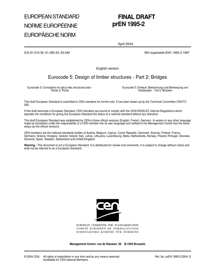 Eurocode 5 - prEN 1995-2 (2004 Abr) | PDF | Bending | Fatigue (Material)