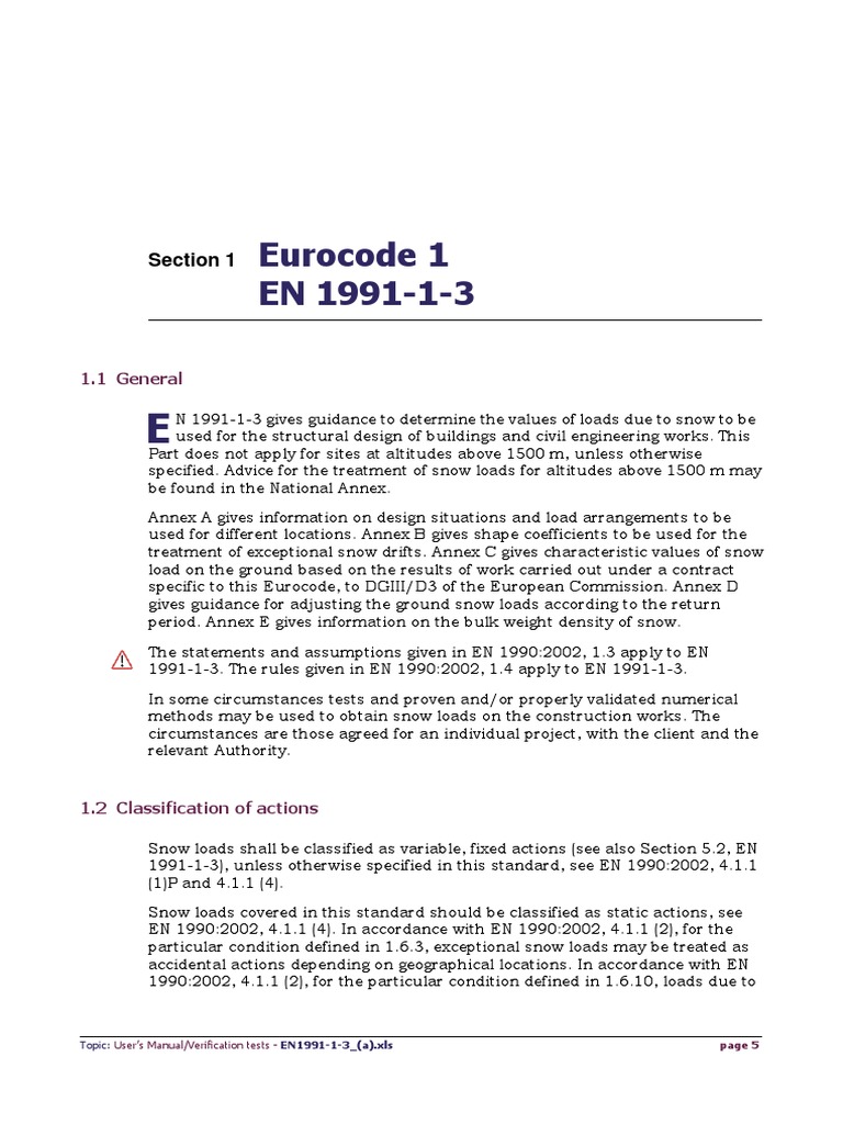 Eurocode 1 EN 1991-1-3: Section 1 | PDF