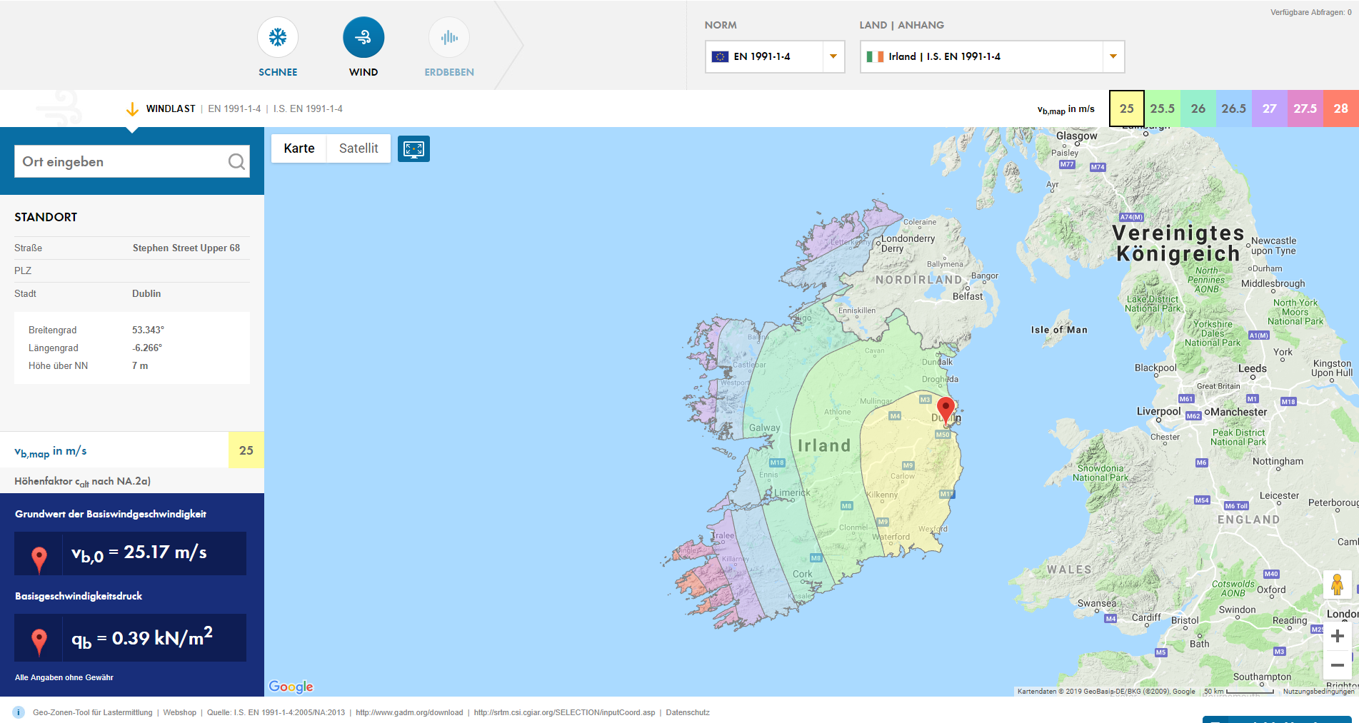 Basic Wind Velocity for Ireland According to Eurocode