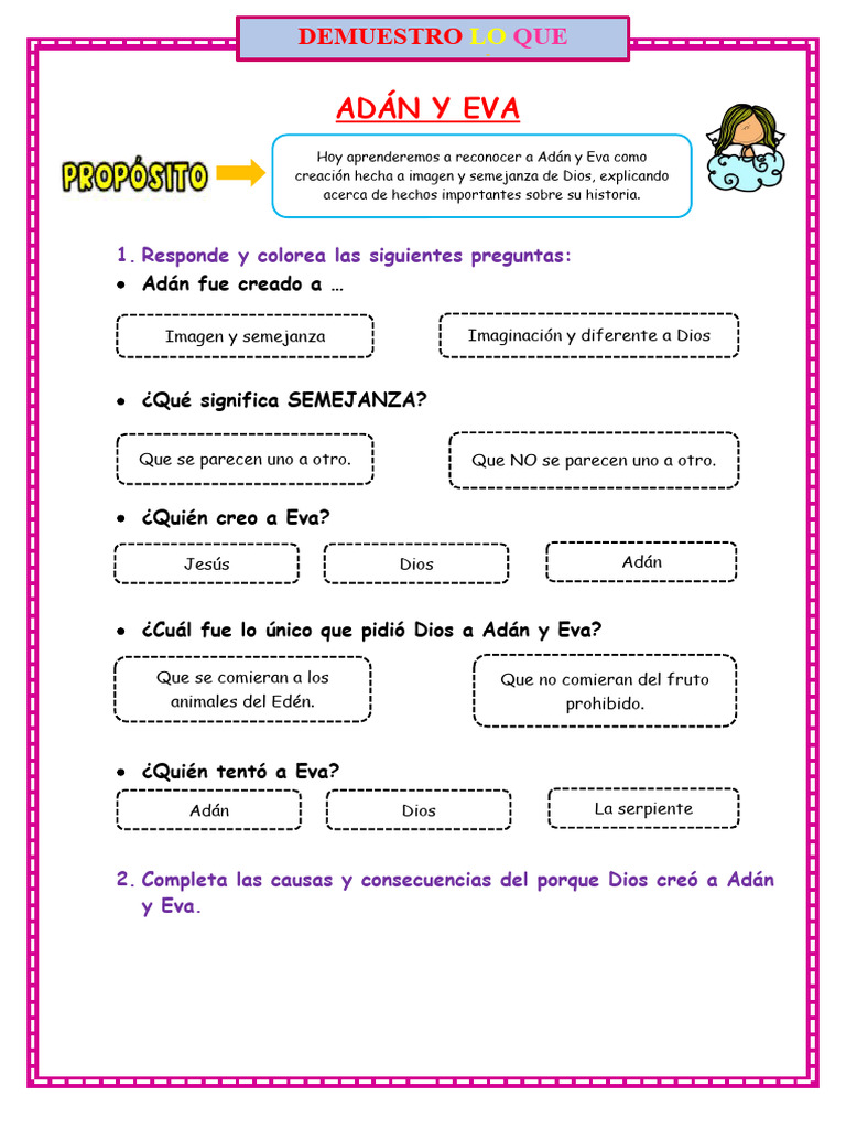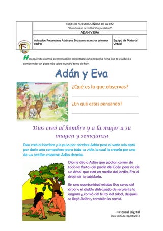 Ficha Religion Adan y Eva | Descargar gratis PDF | Adán y Eva | Adán