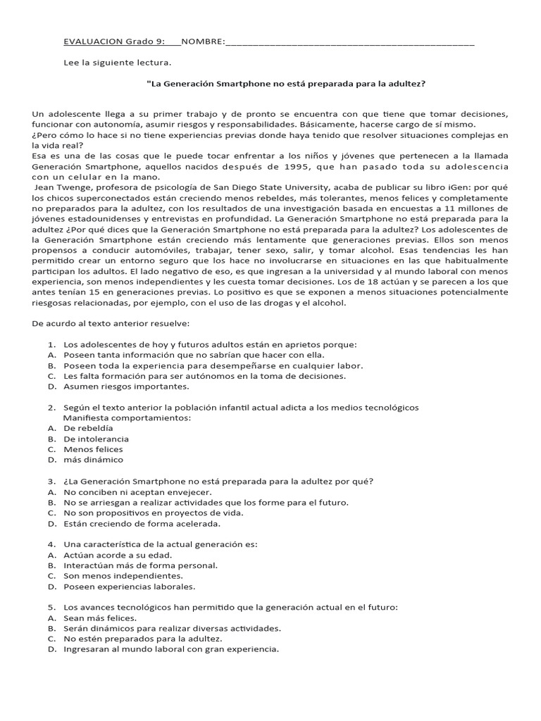 Eva Grado 9 | PDF | Adultos | Sicología