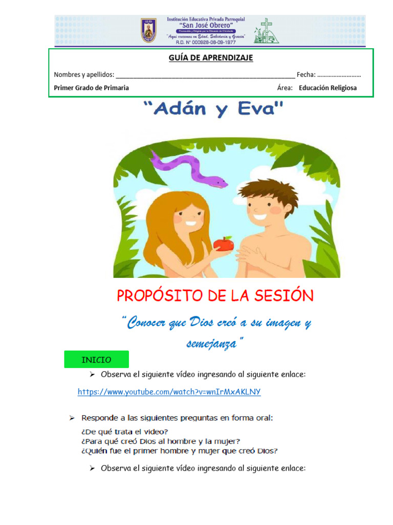 Adán y Eva Primer Grado | PDF