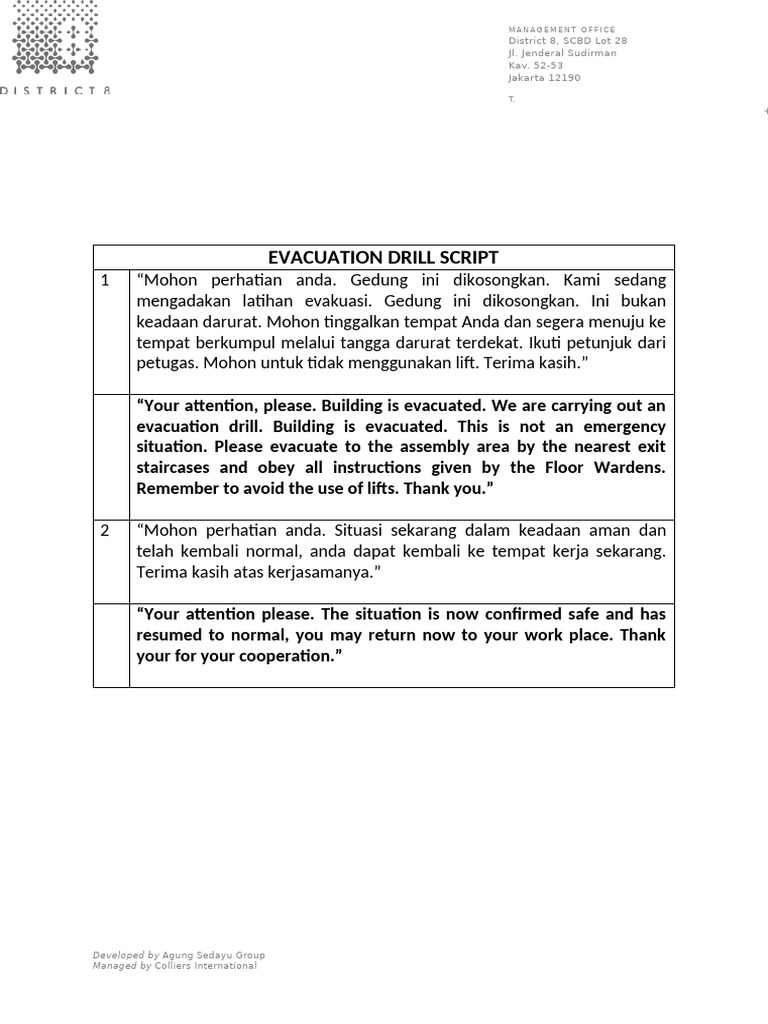 Evacuation and Fire Drill Script | PDF
