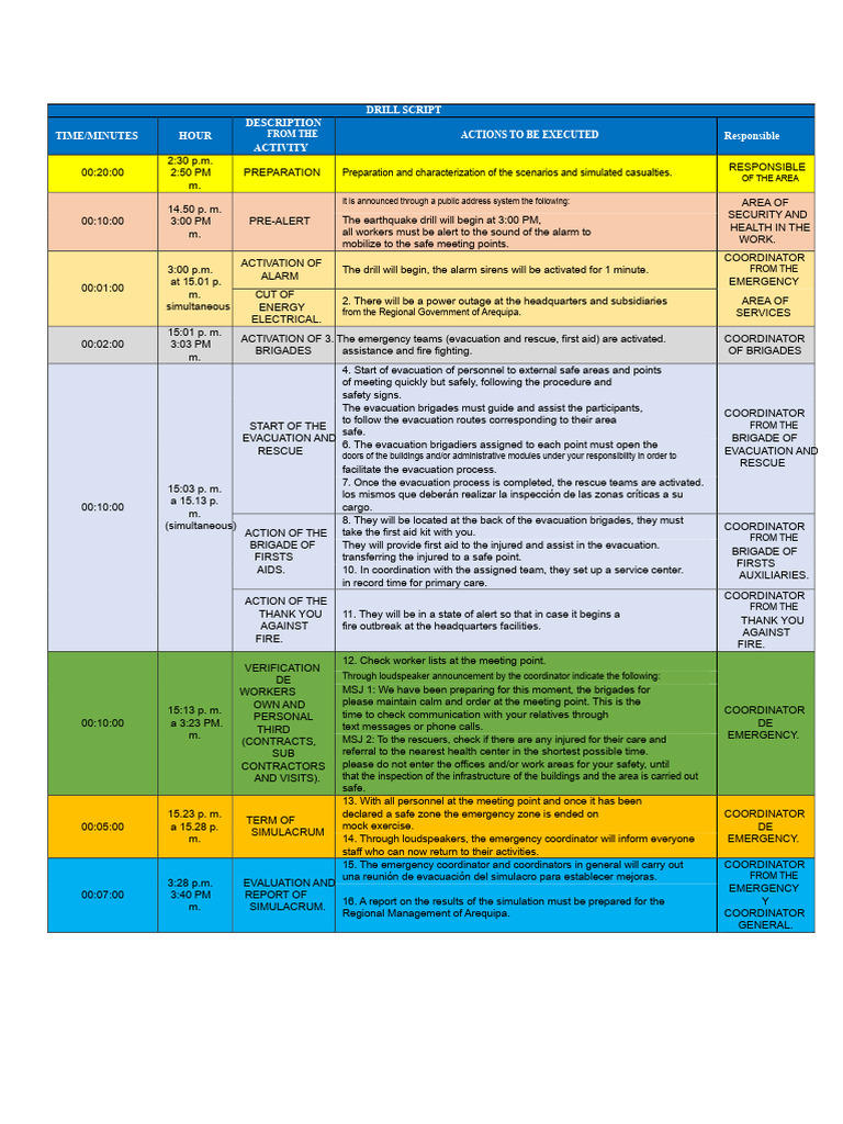 Fire Emergency Evacuation And Rescue Drill Script Excel | Template Free ...