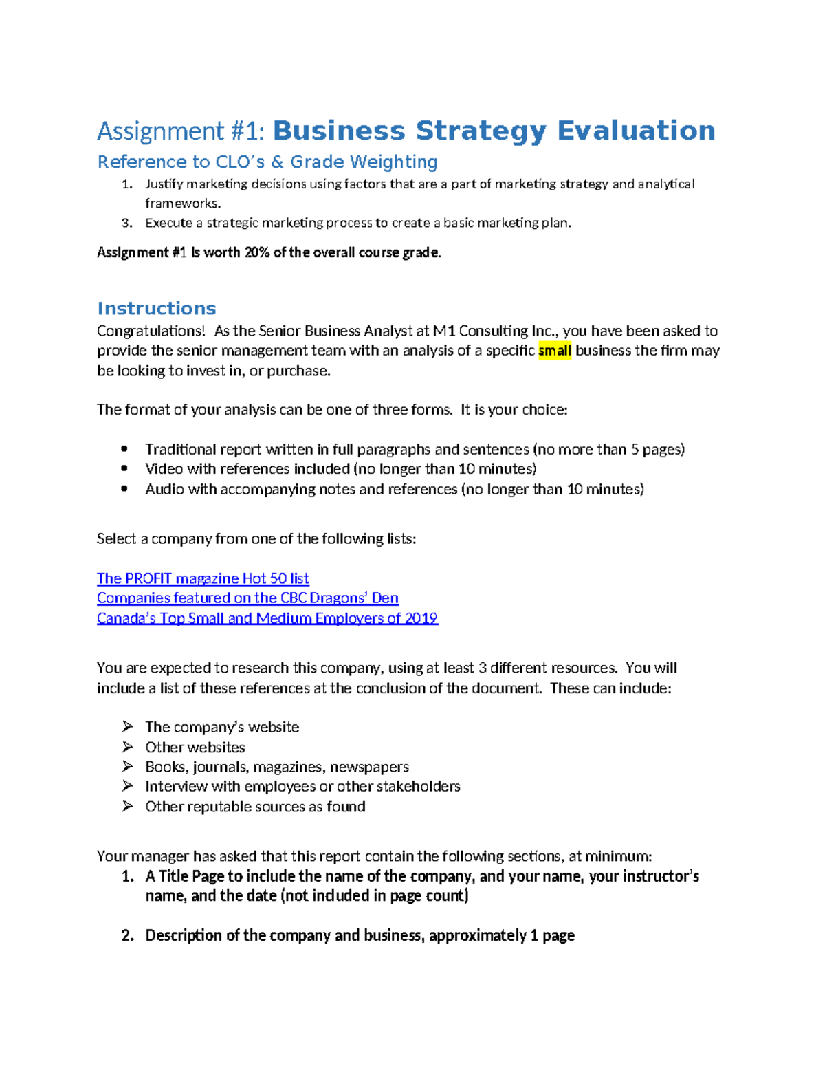 Assignment #1 - Business Strategy Evaluation - Assignment #1: Business ...