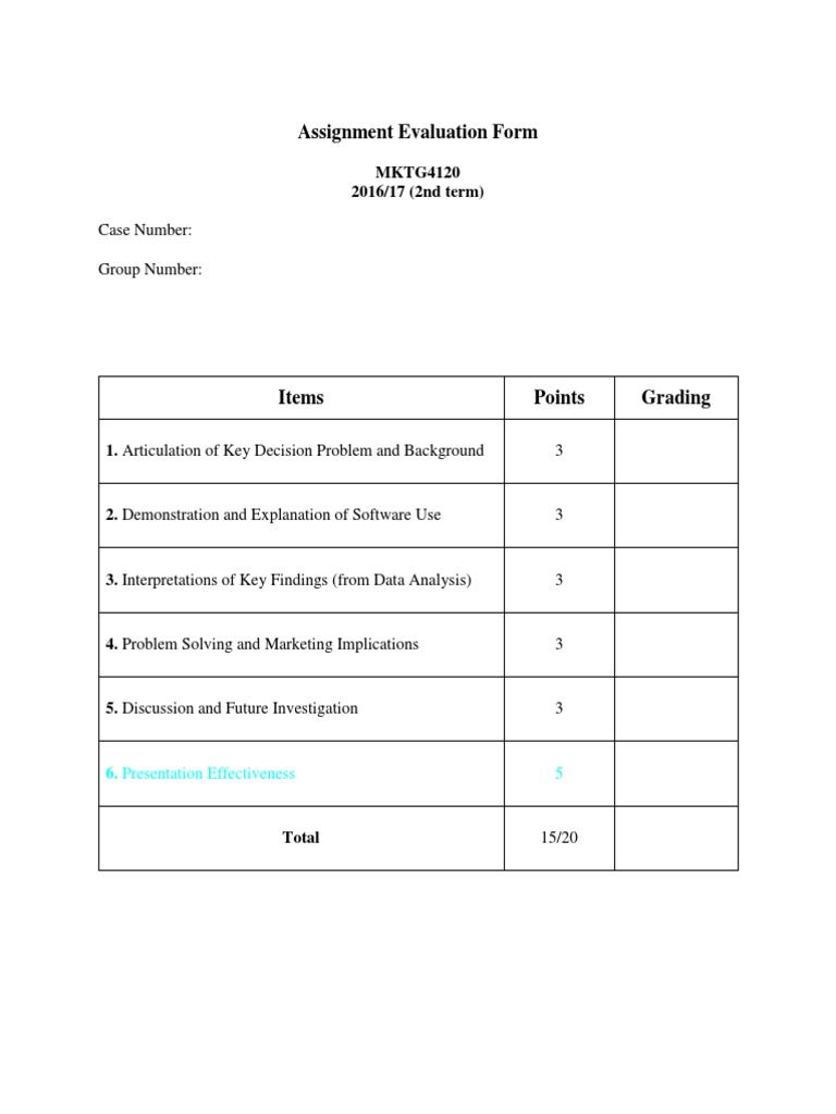 Assignment Evaluation Form: Case Number: Group Number | PDF