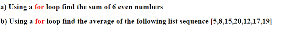 Solved ) Using a for loop find the sum of 6 even numbers ) | Chegg.com