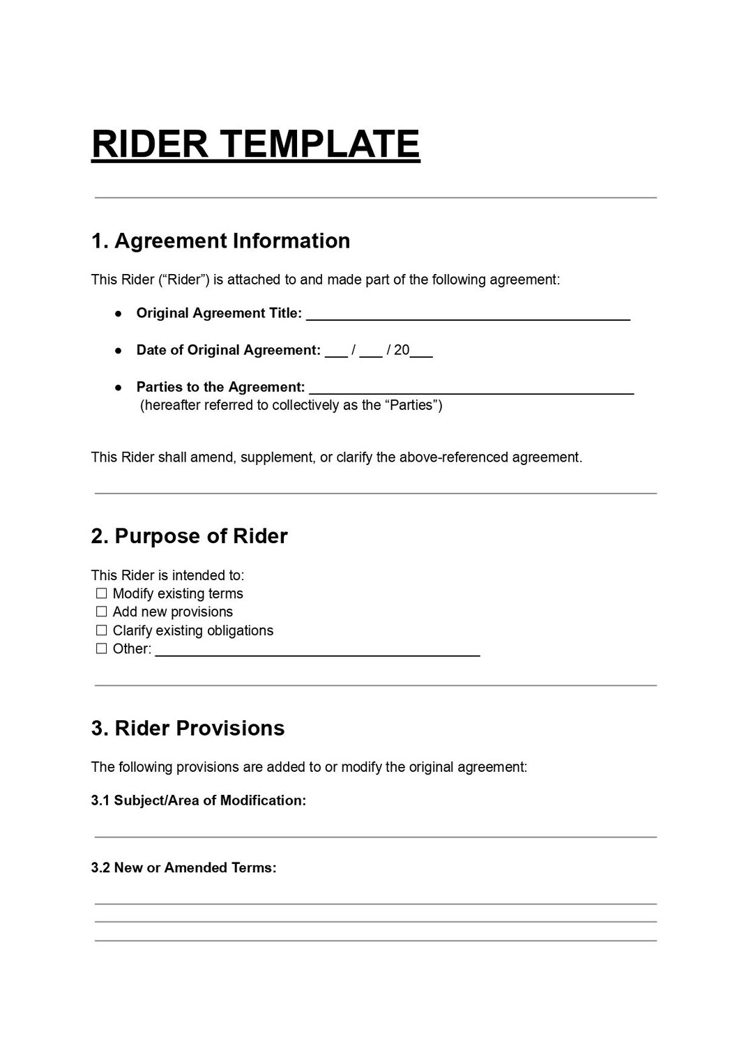 Free Contract Addendum Templates - Customize, Download & Print PDF ...