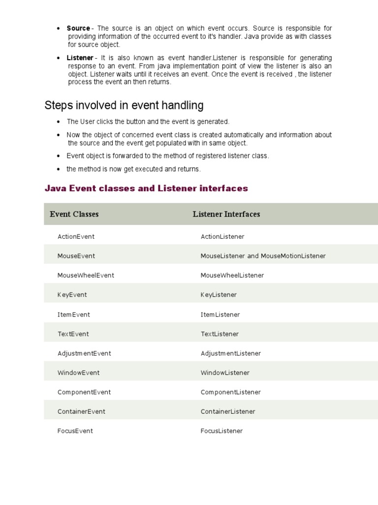 Steps Involved in Event Handling: Java Event Classes and Listener ...