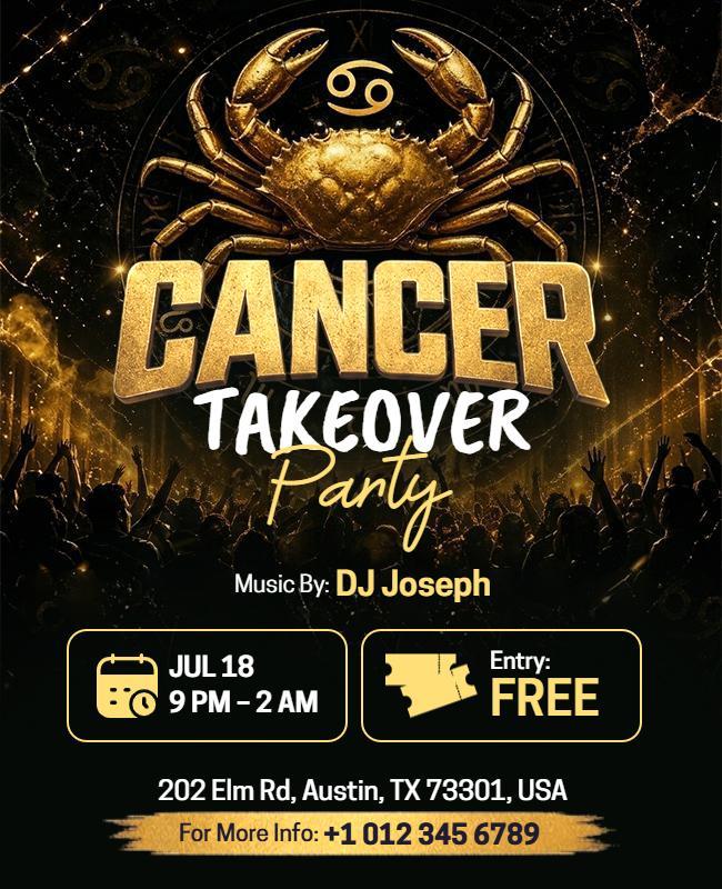 Zodiac Cancer Takeover Party Event Flyer Template