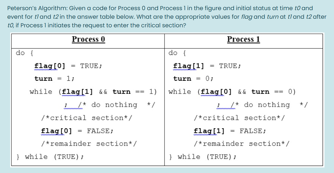 Solved Peterson's Algorithm: Given a code for Process O and | Chegg.com