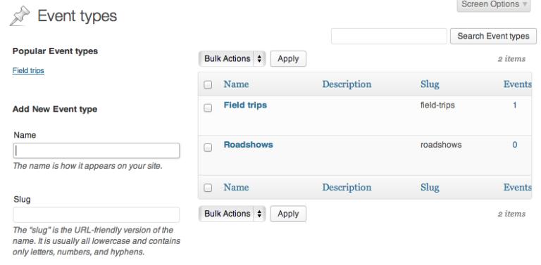 Adding New Events and Event Types to Your Events Calendar - Help Files