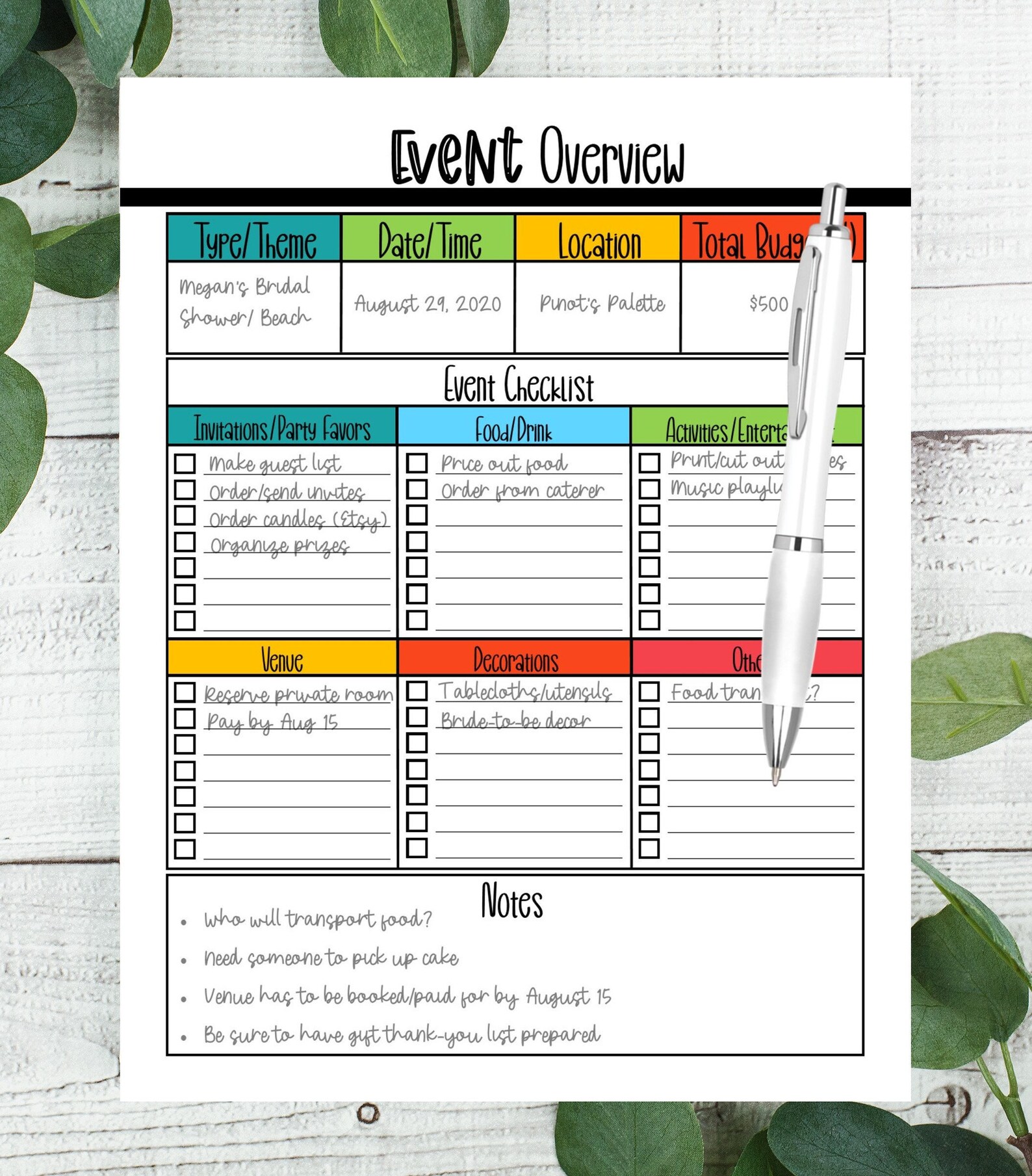 EDITABLE Event Overview Event Planner Printable Birthday - Etsy