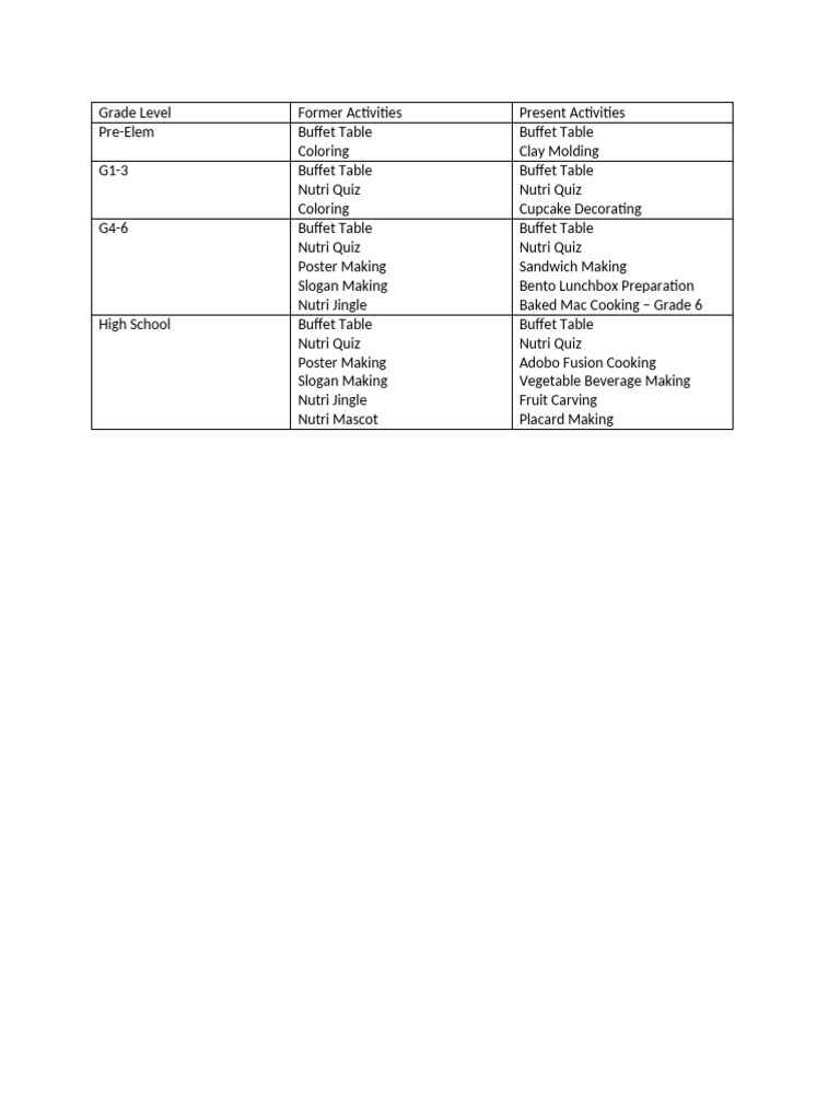 Program of Activities Matrix | PDF | Games Of Physical Skill | Ball Games