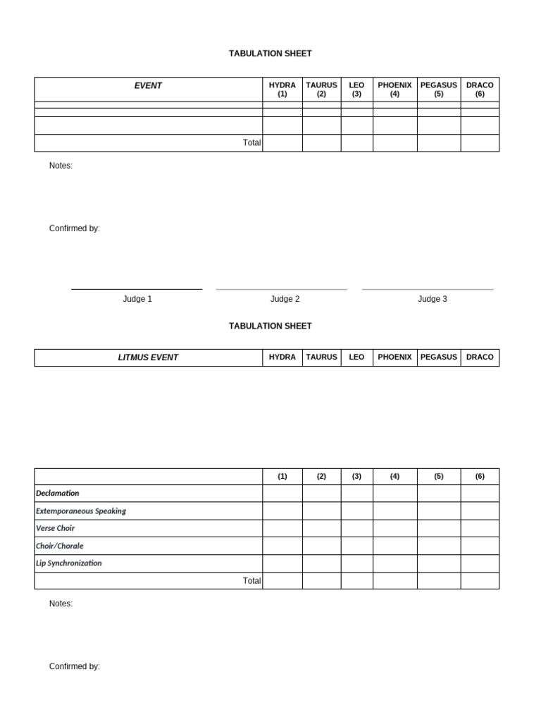 Event Tabulation Sheet Summary | PDF