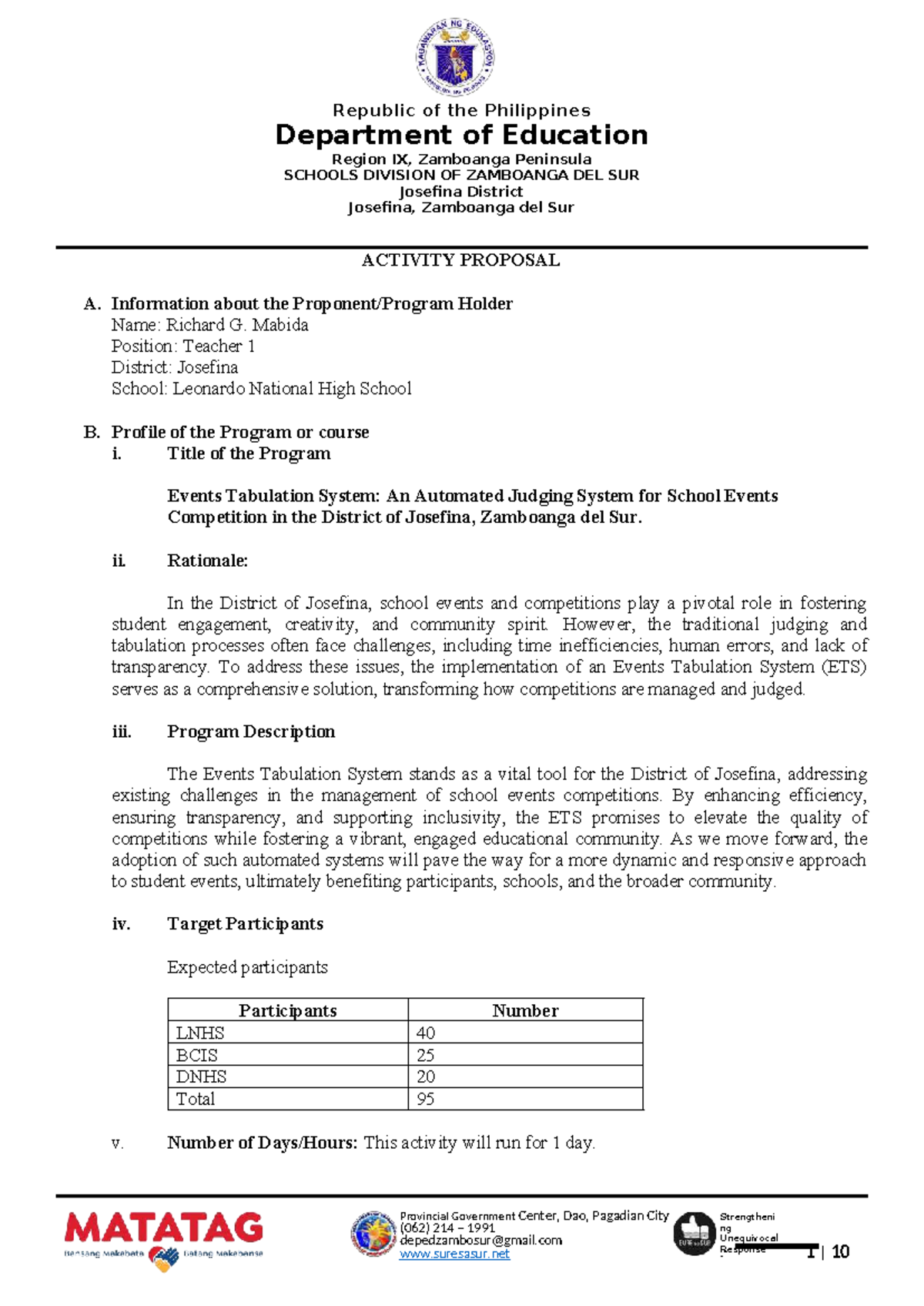 Activity Proposal: Events Tabulation System for School Competitions ...
