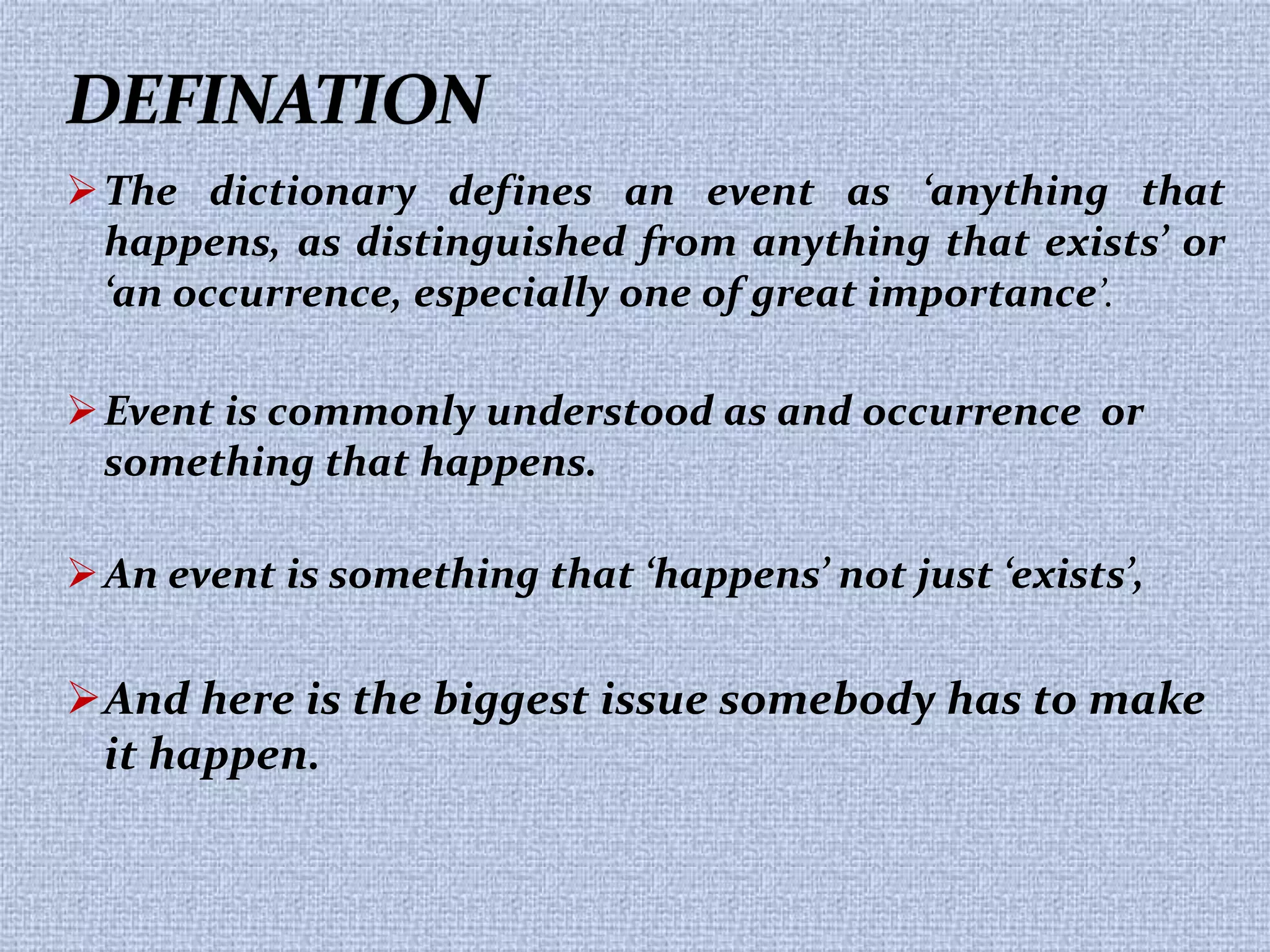 Event Management Lectures 1-10 - EVENT MANAGEMENT LECTURE 1 DEFINING AN ...