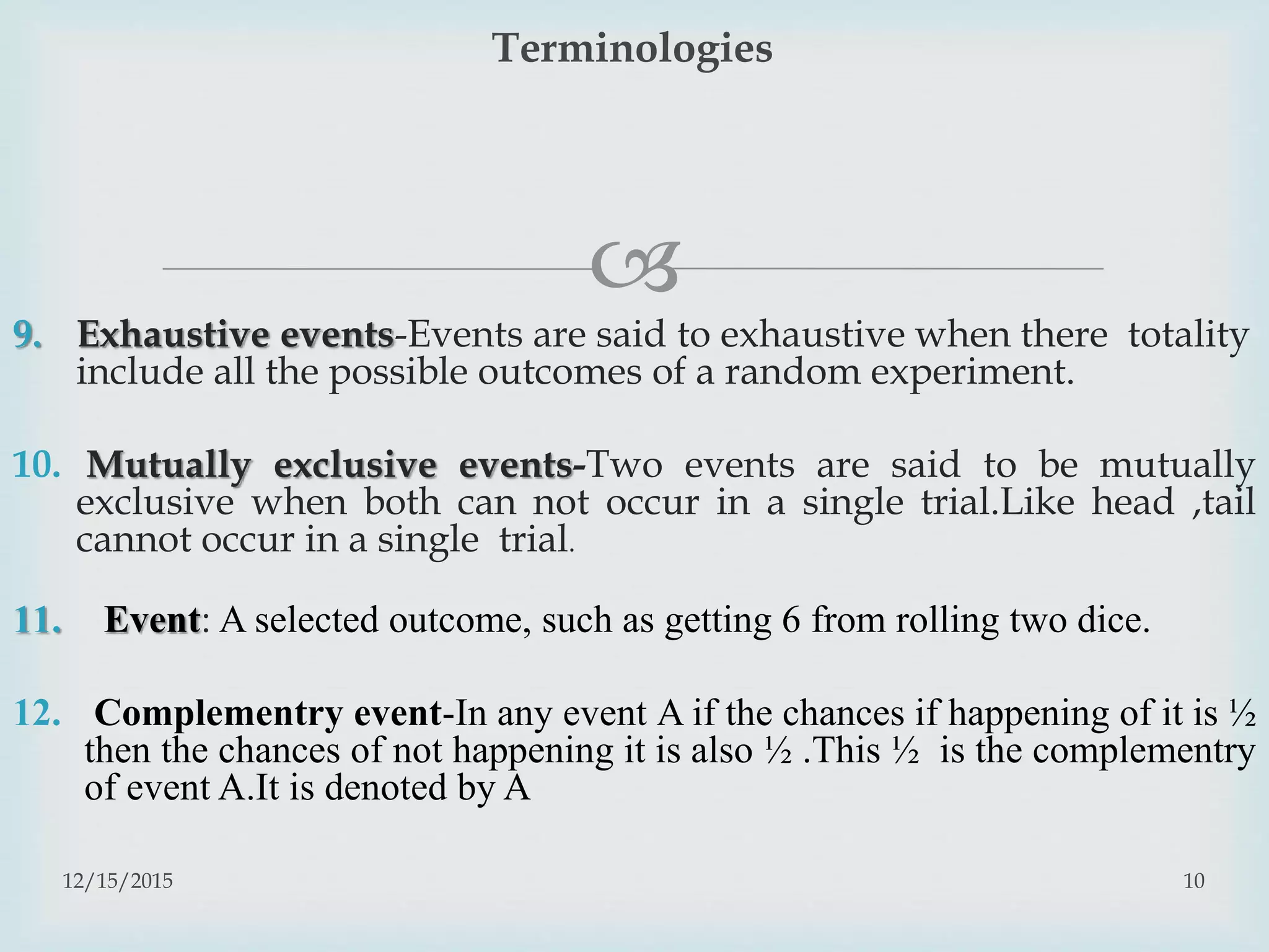 Basic Terminology:• • • • • Trial & Event Exhaustive | Probability ...