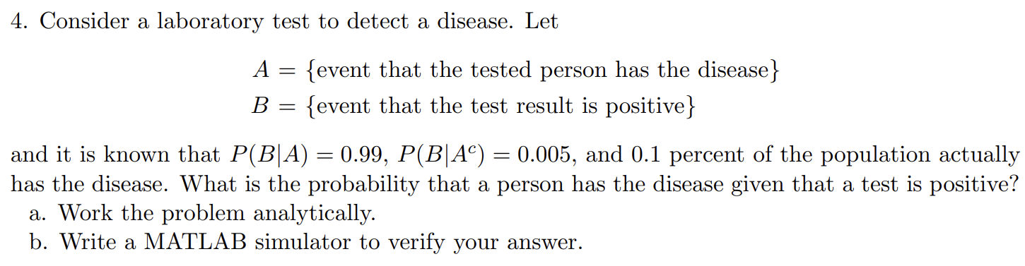 Solved 4. Consider a laboratory test to detect a disease. | Chegg.com