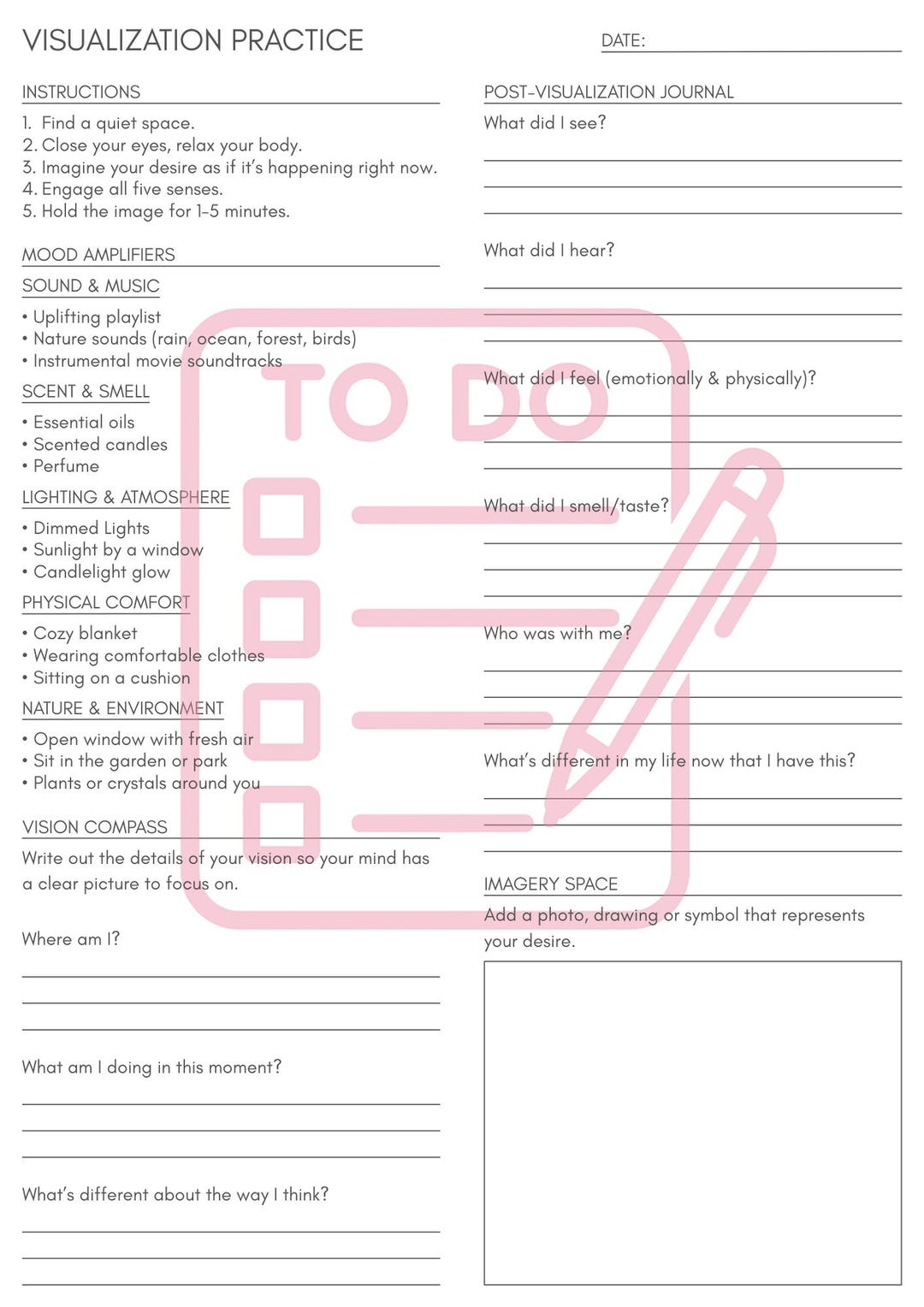 Visualization Practice Worksheet | Guided Visualization Journal ...