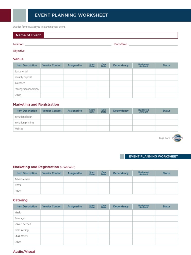 Pin by Willette Hazelwood on Events | Event planning worksheet, Event ...