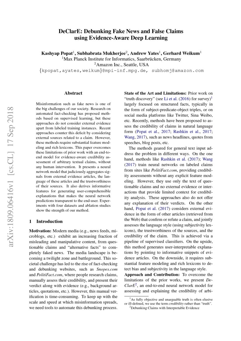 DeClarE: Debunking Fake News and False Claims using Evidence-Aware Deep ...