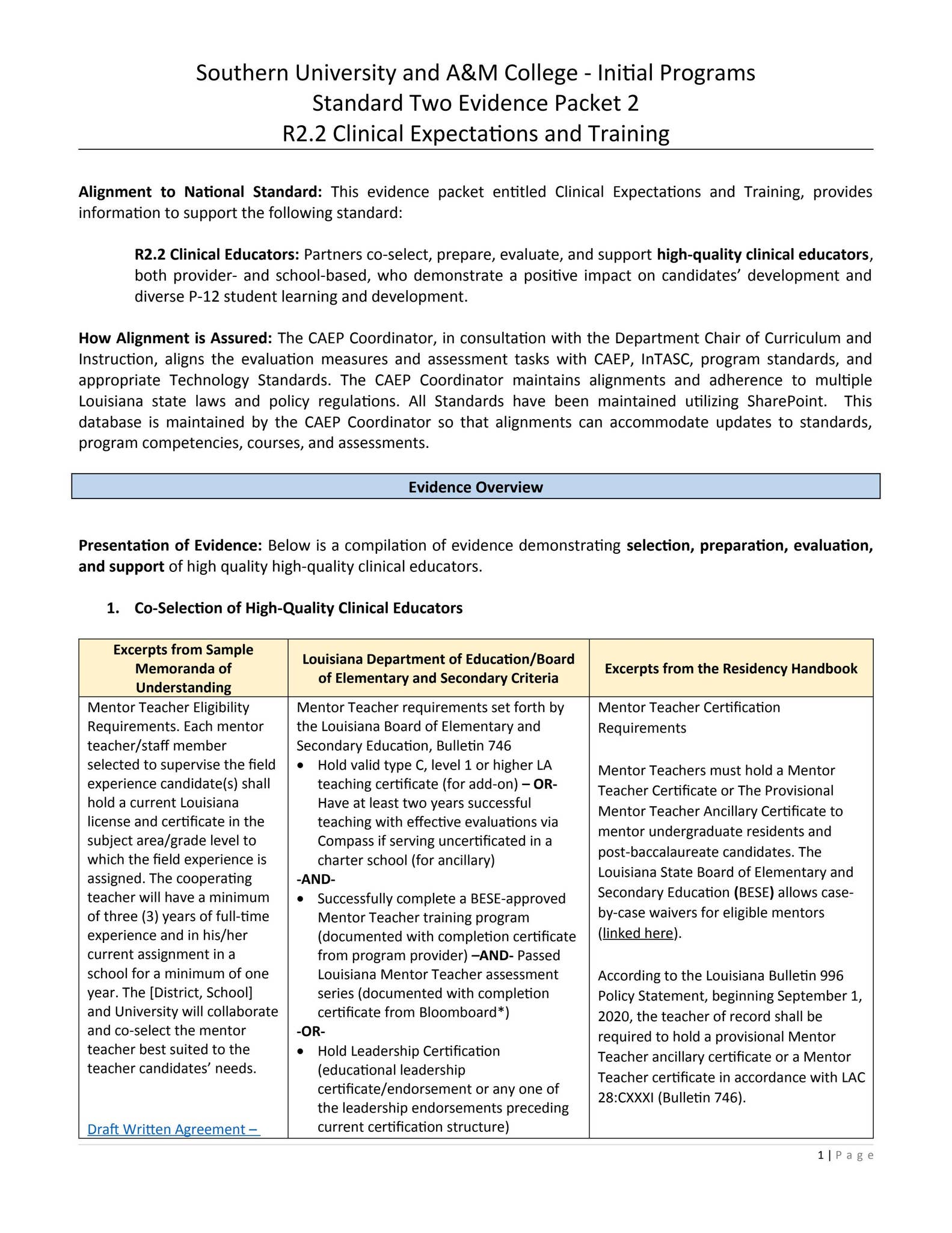 Standard Two Evidence Packet 2 - R2.2 Clinical Expectations and ...