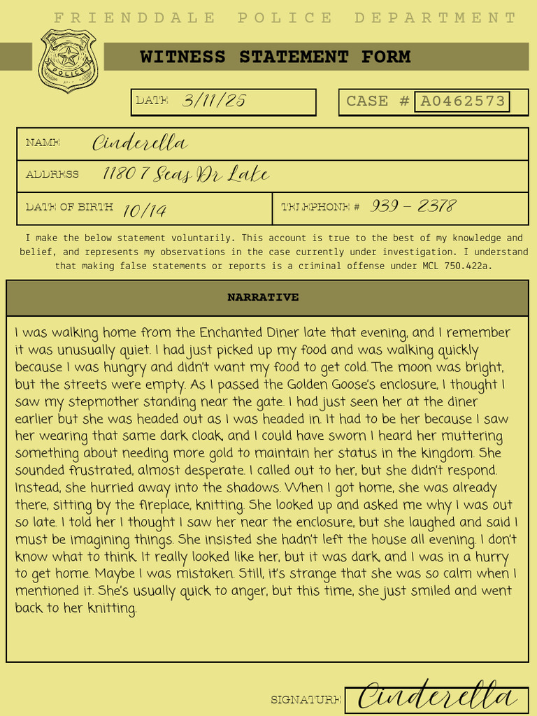 The Case of The Missing Golden Goose - Evidence Packet 1 | PDF | Witness
