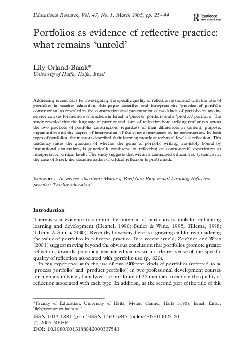 (PDF) Portfolios as evidence of reflective practice: what remains ‘untold’