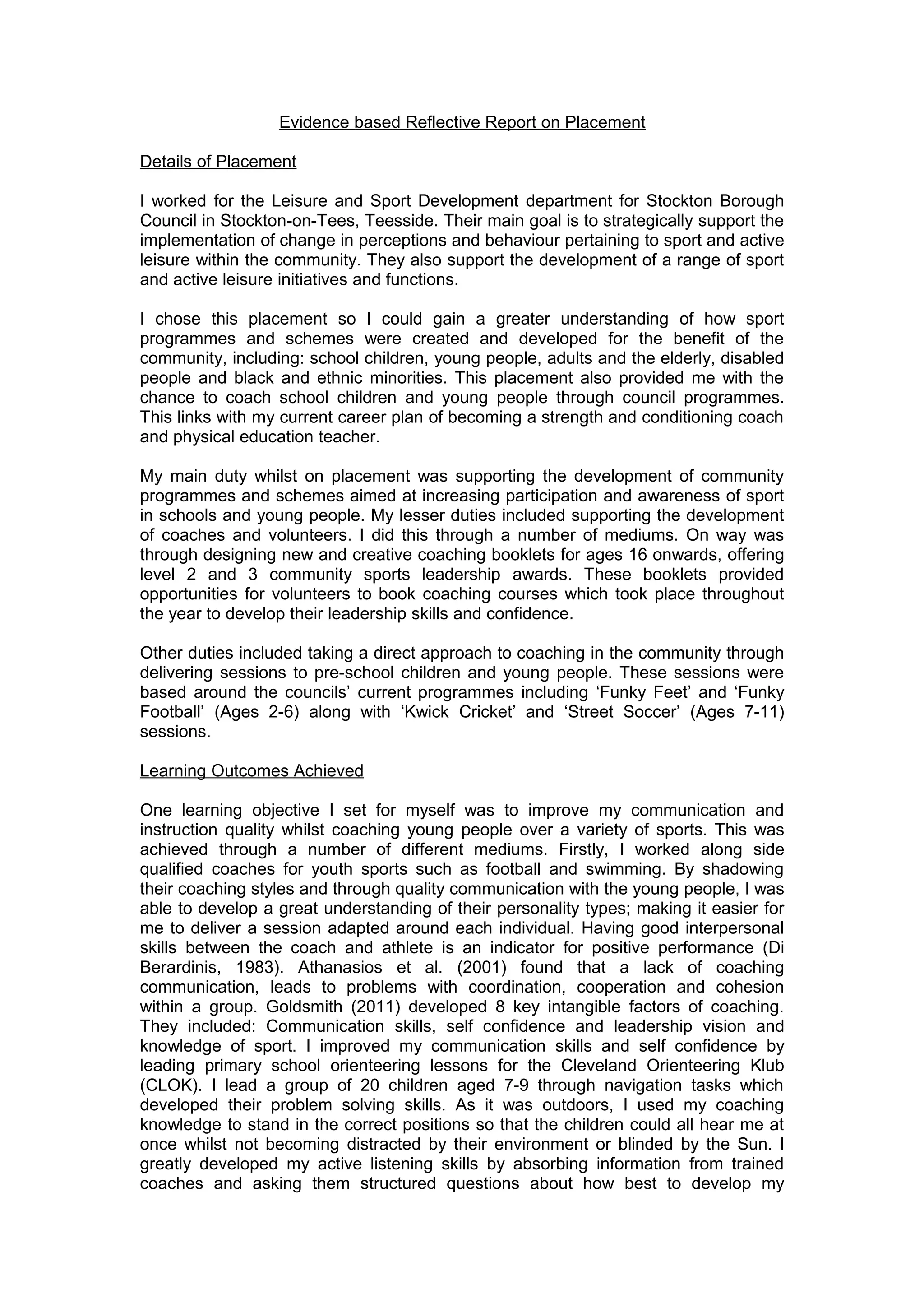 Evidence based reflective report on placement | DOC