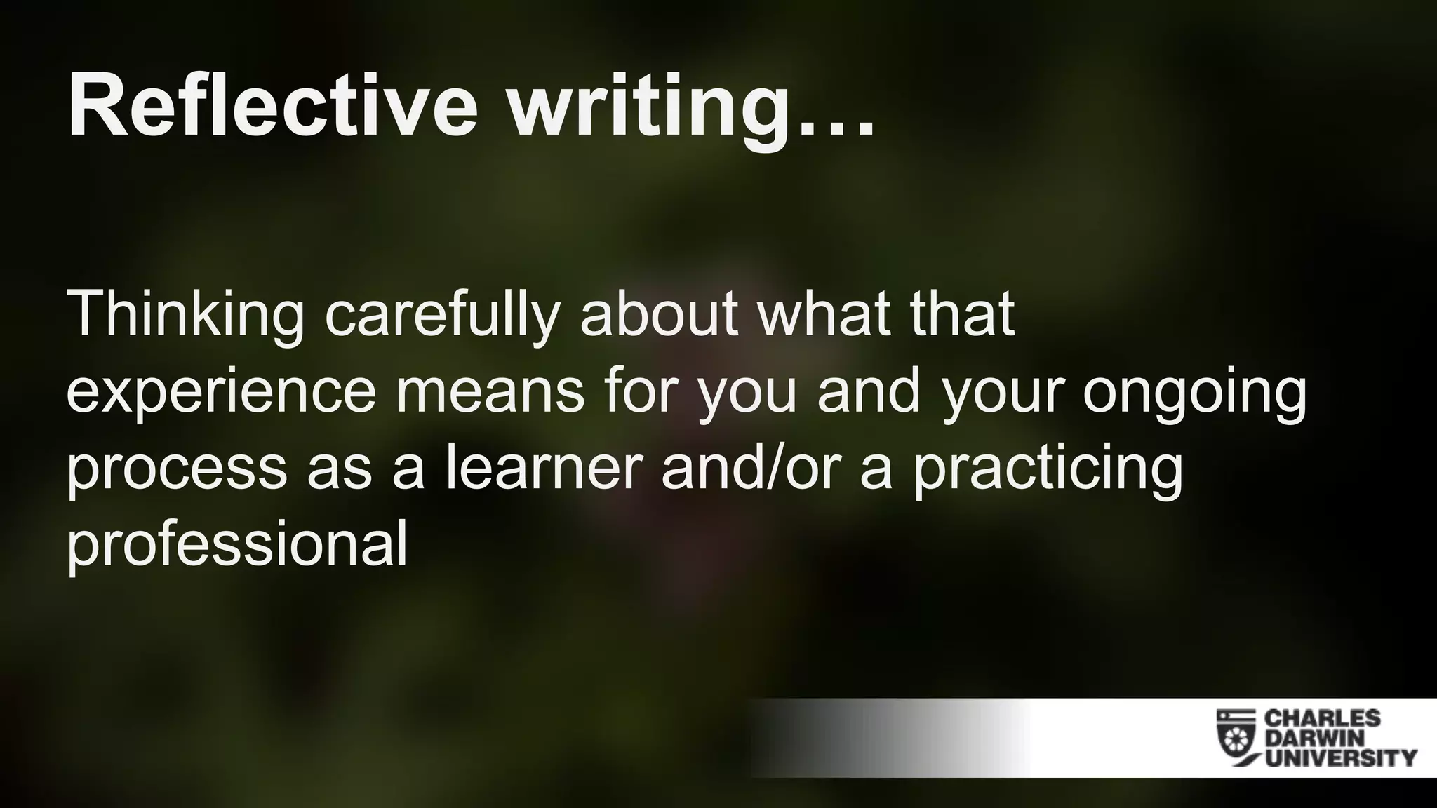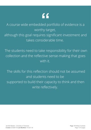 Scaffolding reflective writing for the portfolio of evidence Jennifer ...