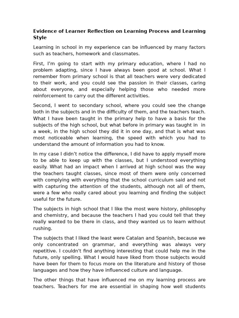 Evidence of Learner Reflection On Learning Process and Learning Style | PDF