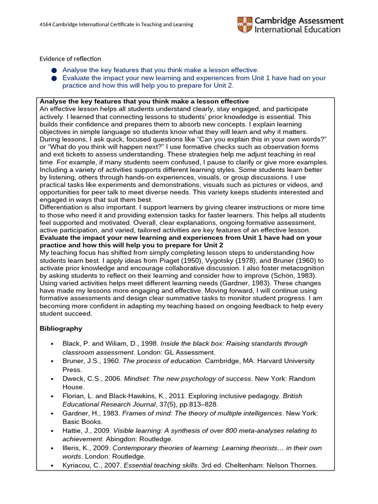 Critical Reflection Evidence | PDF