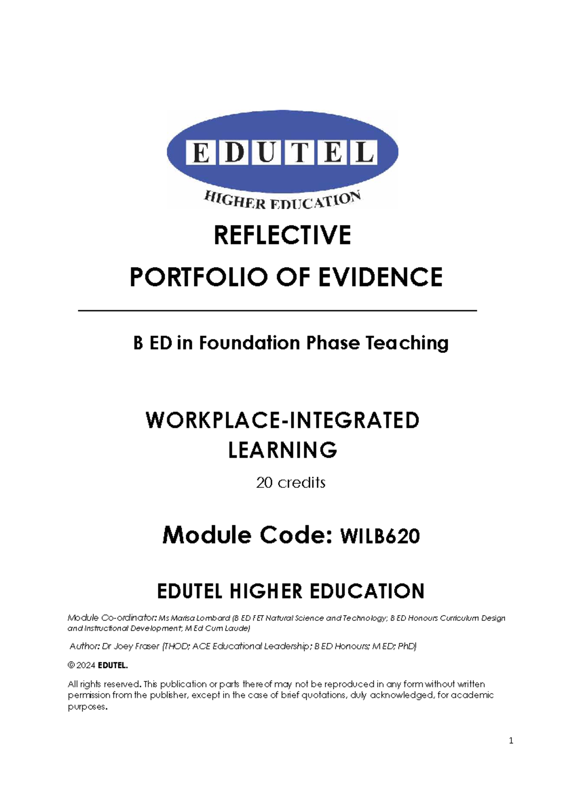 Reflective Portfolio of Evidence: BEd Foundation Phase Teaching WILB620 ...