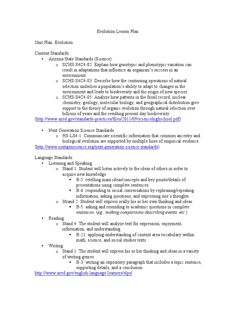 Evolution Lesson Plan | Download Free PDF | Evolution | Organisms