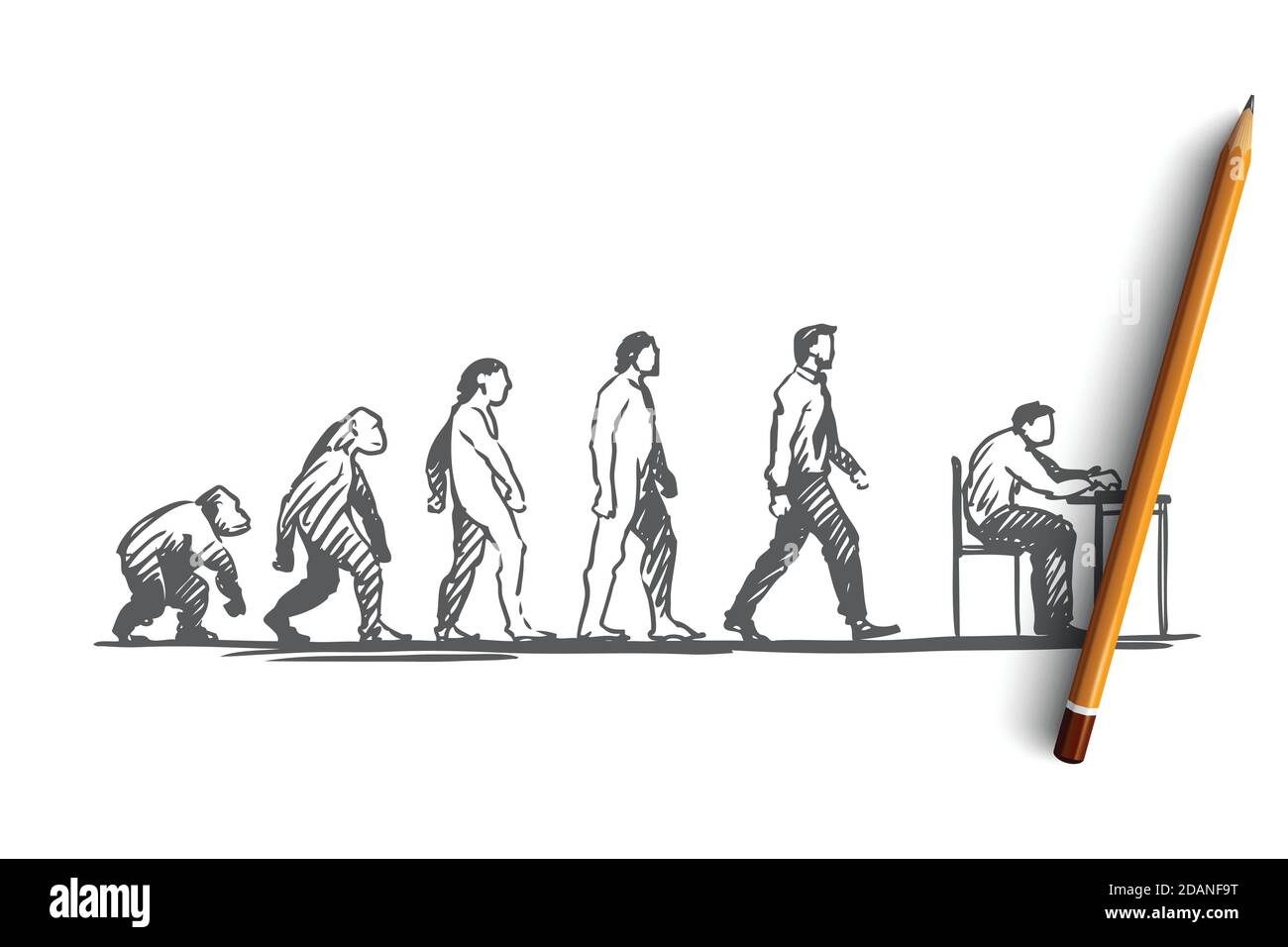 Evolution, businessman, programmer, primitive concept. Hand drawn ...