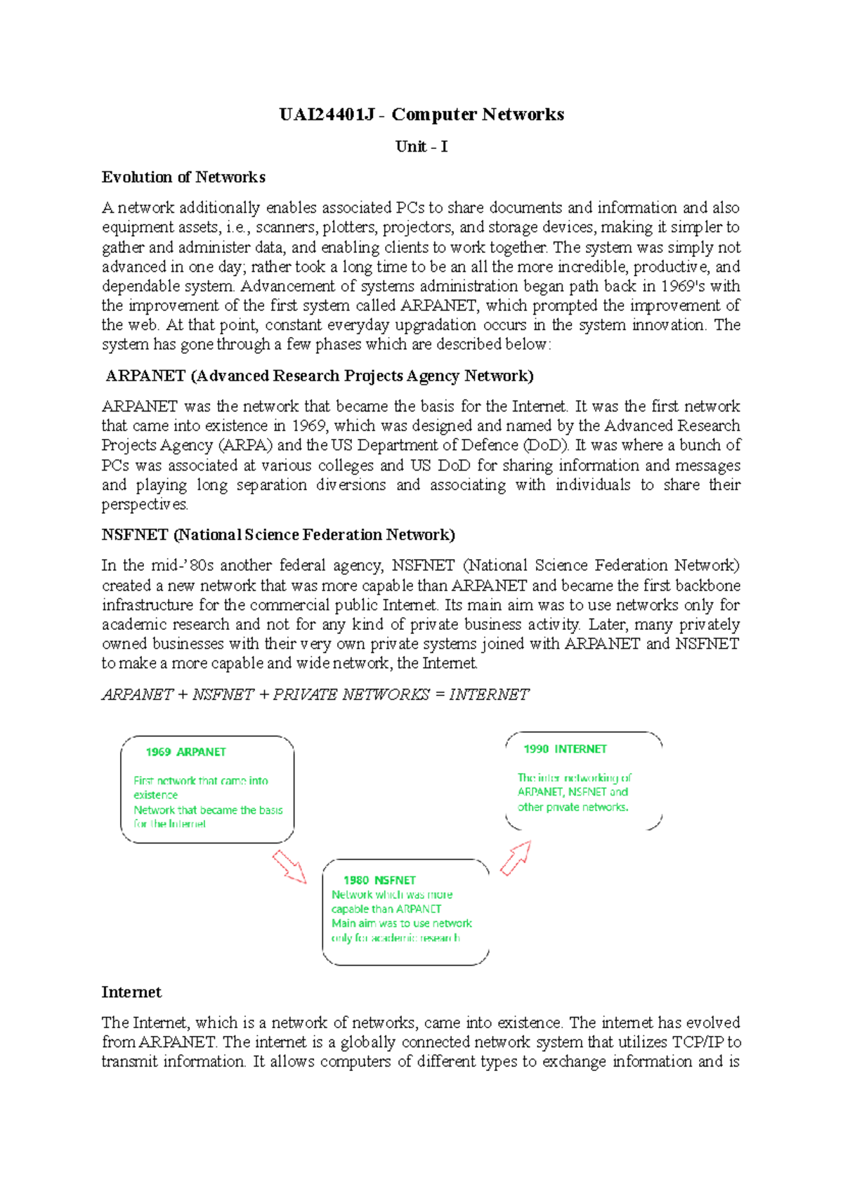 UAI24401J Computer Networks Unit I: Evolution and Impact of Networks ...