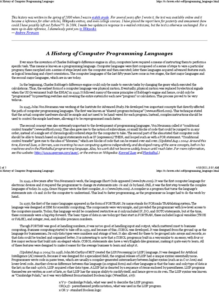 Evolution of Computer Programming Languages | PDF | Modular Programming ...