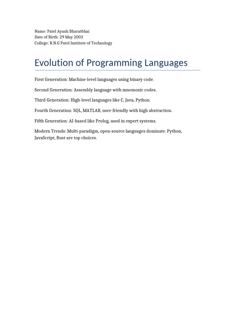 EVOLUTION OF PROGRAMMING LANGUAGES: A Comprehensive Overview - Studocu