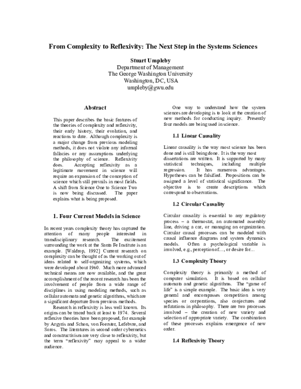 (PDF) From Complexity to Reflexivity: The Next Step in the Systems Sciences
