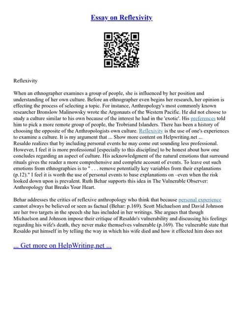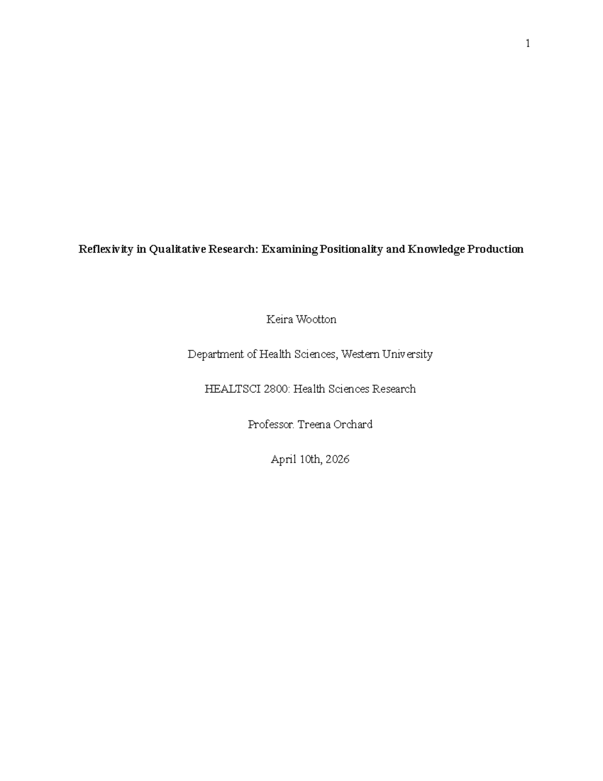 Reflexivity in Qualitative Research: Final Essay HS2800 - Studocu